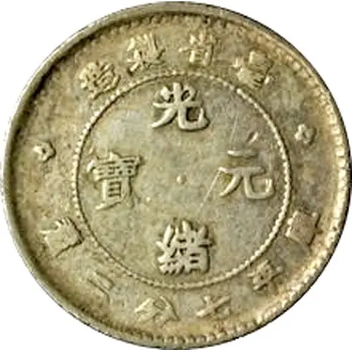 造製省臺 光 寶元 緒 釐二分七平庫 (Translation: Made in Tai Province Guangxu (Emperor) / Yuanbao (Original currency) Worth 7.2 Candareens (weight)) |