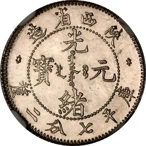 | Obverse lettering | 造省西陝 光 ᠪᠠᡩᠠᡵᠠᠩᡤᠠ 寶 ᠶᡠᠸᠠᠨ ᠪᠣᠣ 元 ᡩᠣᡵᠣ 緒 釐二分七平庫 (Translation: Made in Shensi Province Guangxu (Emperor) / Yuanbao (Original currency) Guangxu (Emperor) / Yuanbao (Original currency) Worth 7.2 Candareens (weight)) |