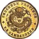 Dragon with pearl at centre surrounded by English legend. |