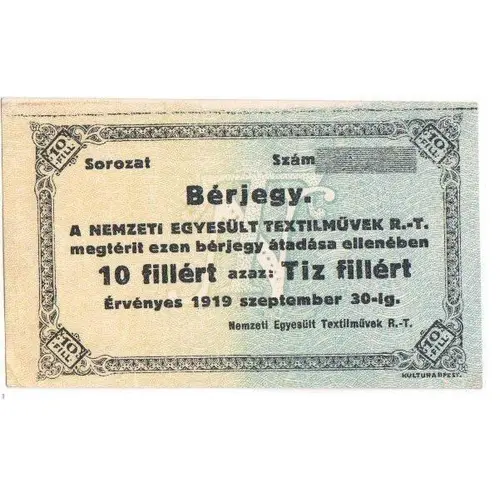 10 Fillér Nemzeti Egyesült Textilművek Rt., Budapest