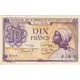 | Reverse lettering | BANQUE DE L`AFRIQUE OCCIDENTALE DIX FRANCS L`ART. 139 DU CODE PÉNAL PUNIT DES TRAVAUX FORCÉS CEUX QUI AURONT CONTREFAIT OU FALSIFIÉ LES BILLETES DE BANQUE AUTORISÉE PAR LA LOI |