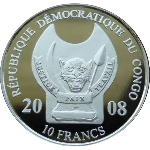 | Obverse lettering | RÉPUBLIQUE DÉMOCRATIQUE DU CONDO JUSTICE PAIX TRAVAIL 2008 10 FRANCS |