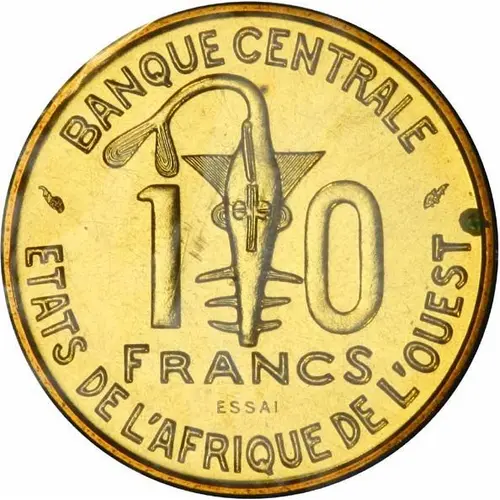 10 FRANCS BANQUE CENTRALE ETATS DE L`AFRIQUE DE L`OUEST ESSAI (Translation: Central Bank of [the] West African States Trial) |