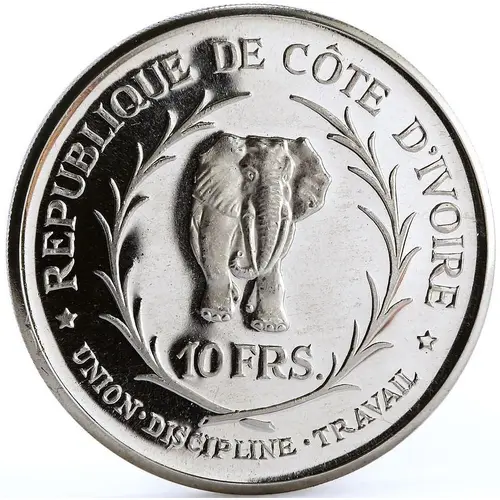 Artistry: The design of this substantial silver coin reflects dignified national iconography. While the specific engraver is often undocumented, stylistic execution suggests European minting traditions, likely the Monnaie de Paris. The obverse presents a robust, lifelike portrait of President Houphouët-Boigny, rendered with classical yet modern sensibility, emphasizing his statesmanlike presence. The reverse typically features the denomination, country name, and a symbolic Ivorian emblem, executed with clarity and balance.