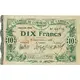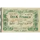 | Reverse lettering | CHAMBRE DE COMMERCE DE CAMBRAI 10 LA LOI PUNI LES CONTREFACTEURS BON émis par délibération de la Chambre de Commerce de Cambrai du 15 Septembre 1914 ; remboursable par la Chambre de Commerce de Cambrai, cent jour après la signature de la Paix. Pour être valable, le présent Bon dois porter une indication de Série, un Numéro, trois signa- tures et le cachet de la Chambre de Commerce. LE PRÉSENT BILLET SERA REMBOURSÉ PAR LA CHAMBRE DE COMMERCE DE CAMBRAI CENT JOURS APRÈS LA SIGNATURE DE LA PAIX. IMP. DELIGNE & CIE CAMBRAI |