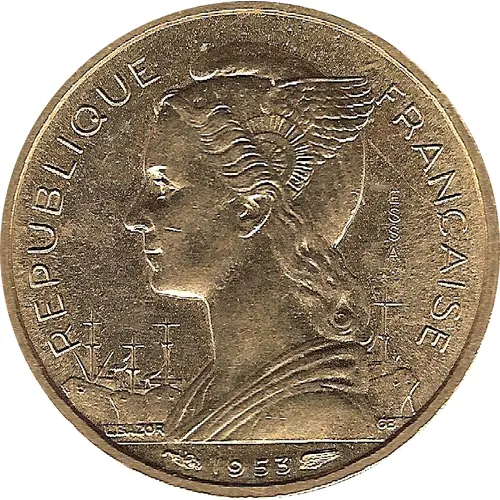 Historical Context: Issued in 1953, this 10 Francs Essai coin from Madagascar dates to a pivotal period for French colonial territories. Following the Malagasy Uprising, Madagascar remained a French Overseas Territory within the French Union. The Essai signifies the French administration's efforts to standardize currency, potentially exploring new denominations or economical alloys like aluminium bronze in the post-war economic climate, preceding full independence in 1960.