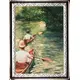Colored famous painting `Les Périssoires` from Gustave Caillebotte inside a decorated frame. The painting depicts two `Perissoires` on the river Yerre. The Perissoire is the oldest leisure boat operated with a paddle. |