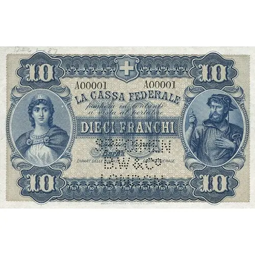 | Obverse lettering | 10 10 LA CASSA FEDERALE pagare in contanti al portatore DIECI FRANCHI valuta legale Berna 10 Agosto 1914. DIPART. DELLE FINANZE CASSA FEDERALE 10 10 |