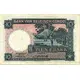Gray-blue on pink underprint. Dancing Watusi at left, with huts and trees in the background. Bank logo in the bottom left. The star of the Belgian Congo to the left, belove a round window. |