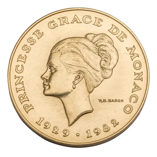| Obverse lettering | PRINCESSE GRACE DE MONACO R.B . BARON 1929 · 1982 |