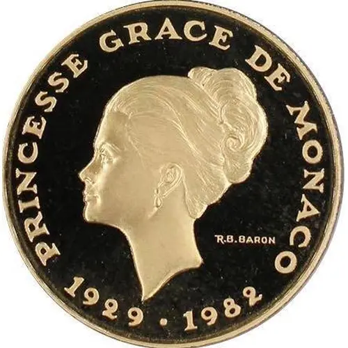 | Obverse lettering | PRINCESSE GRACE DE MONACO R.B . BARON 1929 · 1982 |