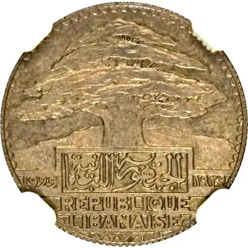 | Opschrift voorzijde | الجمهورية اللبنانية 1929 ١٩٢٩ REPUBLIQUE LIBANAISE (Translation: Lebanese Republic 1929) |