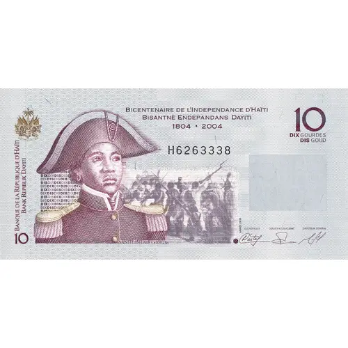 BICENTENAIRE DE L’INDEPENDANCE D’HAÏTI BISANTNÈ ENDEPANDANS DAYITI 1804 • 2004 10 DIX GOURDES DIS GOUD BANQUE DE LA RÉPUBLIQUE D’HAÏTI BANK REPIBLIK DAYITI SANITÉ BELAIR |