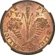 Reverse description Two large cornucopias crossed near bottom, large wheat stalk between, value below.