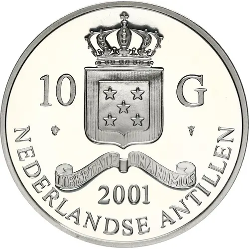 | Obverse lettering | 10 G 2001 NEDERLANDSE ANTILLEN |