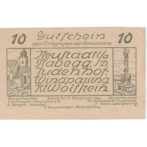| Issuer | Municipalities of Neustadtl an der Donau, Nabegg, Judenhof, Windpassing, and Klein Wolfstein (Federal State of Lower Austria) |