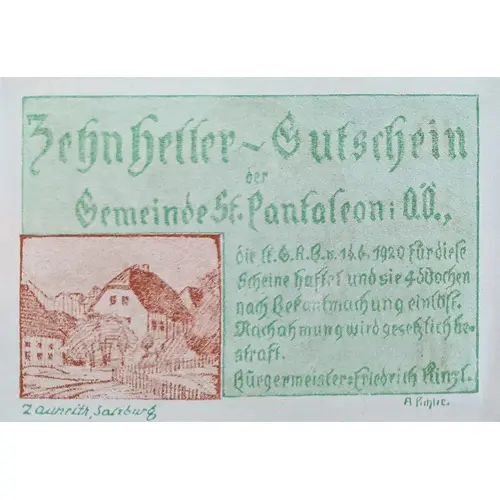 | Obverse description | 10 Heller, St. Pantaleon, OÖ., Gemeinde |