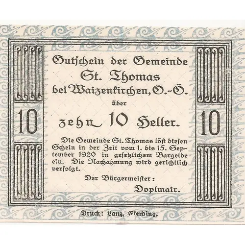 10 Heller St. Thomas bei Waizenkirchen
