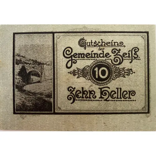 | Obverse lettering | Gutschein der Gemeínde Zeíss 10 zehn heller |