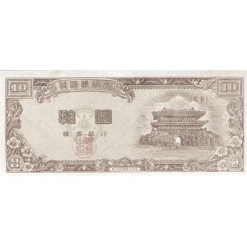 | Reverse lettering | THE BANK OF KOREA 拾 환 TEN HWAN (Translation: Ten Hwan) |