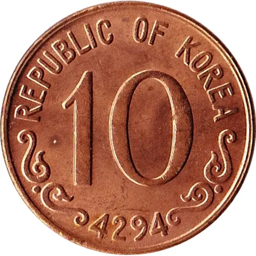 | Reverse lettering | REPUBLIC OF KOREA 10 4294 |
