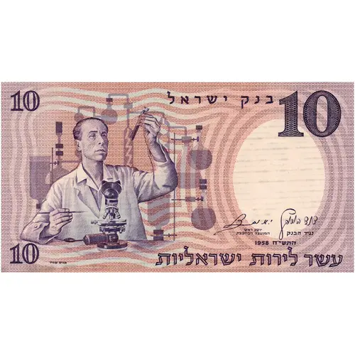 | Obverse description | Figure of a Scientist in a laboratory; the denomination `Ten Israeli pounds` and `Bank of Israel` in Hebrew. |
