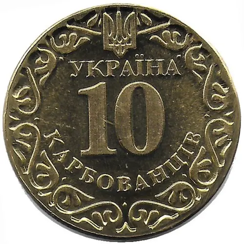 | Obverse lettering | УКРАЇНА 10 10 КАРБОВАНЦІВ |