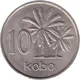 Popis rubu Oil palms to the right with the number `10` to the left and the word `kobo` below making the denomination.