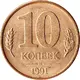 | Reverse lettering | 10 КОПЕЕК М 1991 (Translation: 10 Kopecks) |