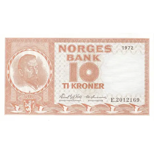 NORGES BANK 10 TI KRONER Knut Getz Wold Ødegaard. (Translation: BANK OF NORWAY TEN KRONER) |