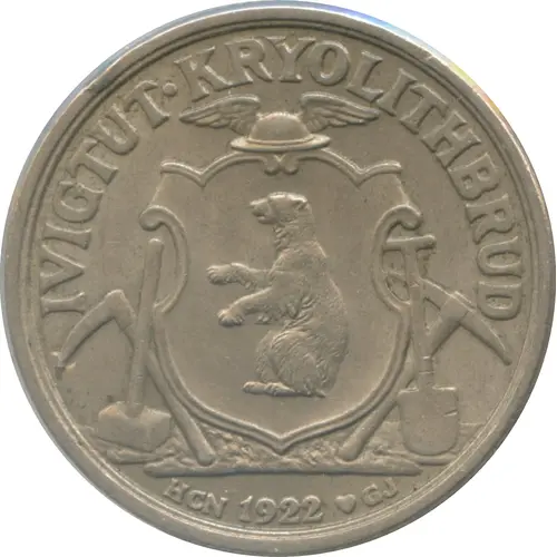 IVIGTUT • KRYOLITHBRUD HGN 1922 ♥GJ (Translation: Ivigtut Cryolite fracture) |