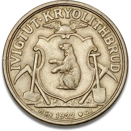 VIGTUT∙KRYOLITHBRUD HGN 1922 ♥GJ (Translation: Ivigtut Cryolite fracture) |