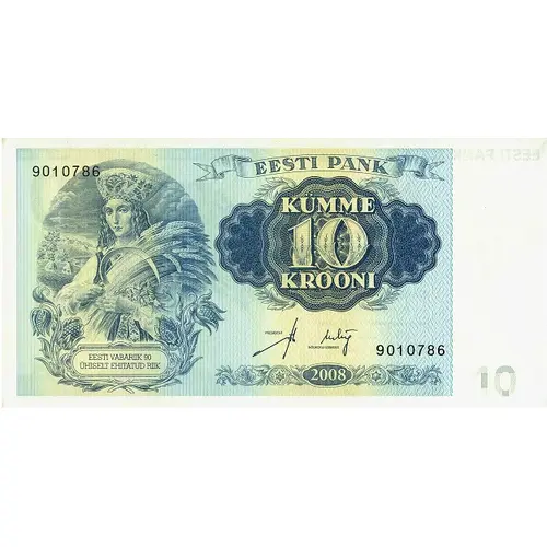 EESTI PANK KÜMME 10 KROONI EESTI VABARIIK 90 ÜHISELT EHITATUD RIIK 2008 |
