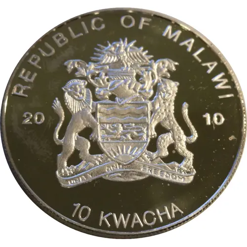 | Obverse lettering | REPUBLIC OF MALAWI 20 10 UNITY AND FREEDOM 10 KWACHA |
