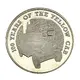 The central design depicts a vintage yellow cab driving through a busy city street, surrounded by detailed architectural elements of urban buildings in the background. The design celebrates the history and legacy of the Yellow Cab. Around the edge, the inscription highlights the occasion. |