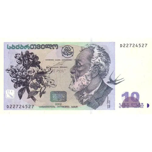 | Obverse lettering | საქართველო ეროვნული ბანკის პრეზიდენტი: ფინანსტა მინისტრი : 2007 საქართველოს ეროვნული ბანკი აკაკი წერეთელი 1840-1915 10 ათი ლარი (Translation: Georgia President of the National Bank (signature) Minister of Finance (signature) 2007 National Bank of Georgia Akaki Tsereteli 1840-1915 10 New Lari) |