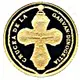 The depiction of the cross from Garvăn Dinogetia; “CRUCEA DE LA GARVAN DINOGETIA” inscribed in an arc; on the outer ring, the chain of the cross. |