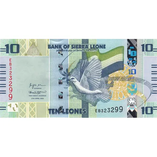 | Obverse lettering | 10 BANK OF SIERRA LEONE 10 promise to pay on demand the sum of 10 TEN LEONES 10 |