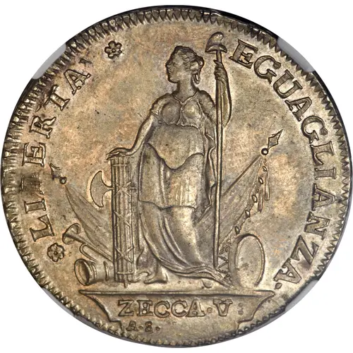 | Legenda del dritto | LIBERTA` EGUAGLIANZA· ZECCA·V: A·S· |