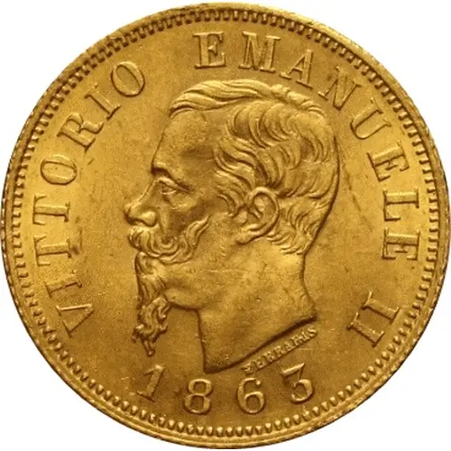 | Obverse lettering | VITTORIO EMANUELE II FERRARIS 1863 |