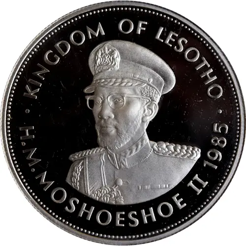 | Obverse lettering | KINGDOM OF LESOTHO H.M. KING MOSHOESHOE II 1985 |