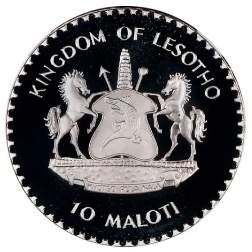 | Legenda awersu | KINGDOM OF LESOTHO KHOTSO PULA NALA 10 MALOTI |