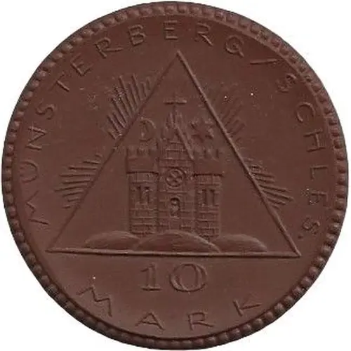 | Reverse lettering | MÜNSTERBERG / SCHLES. 10 MARK |