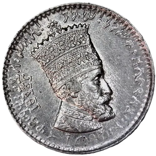 | Obverse lettering | ቀዳማዊ፡ኀይለ፡ሥላሴ፡ንጉሠ፡ነገሥት፡ዘኢትዮጵያ። ፲፱፻፳፫ ⥼ ፲ መቶኛ:: ⥽ (Translation: Hailé Selassié I, King of Kings (Emperor) of Ethiopia 10 9 100 20 3 (meaning (10+9)*100 +20+3 = 1923) 10 Matona/Metonya (መቶ means hundred, መቶኛ means hundreth)) |