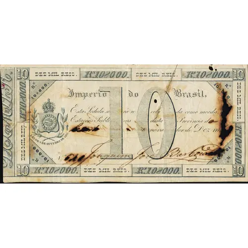 10 DEZ MIL REIS. 10$000. DEZ MIL REIS. 10$000 10 DEZ MIL REIS. 10$000. DEZ MIL REIS. 10$000. Rs. Rs. 10$000. 10$000. Imperio do Brasil Rs. 10$000. Esta cedula será recebida como moeda nas Estações Publicas desta Provincia d___ _________________ no valor de Dez mil rs. 10 Rs. Rs. Nº ___ 10$000. 10$000. 10 10$000. DEZ MIL REIS. 10$000. DEZ MIL REIS. 10 (Translation: 10$000. Ten Thousand Réis Empire of Brazil This ballot will be received as currency at the Public Stations of this _____ Province in the amount of Ten Thousand Réis.) |