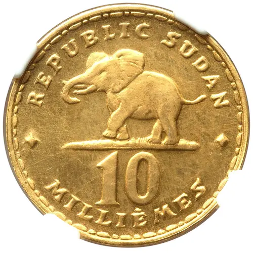 | Obverse lettering | REPUBLIC SUDAN 10 MILLIEMES |