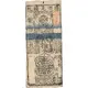| Obverse description | Black print; red and black stamps; blue stripes. Full-lenght figure of Daikoku front-facing, standing on two rice bales, holding large bag to his back with left hand, surrounded by Takarazukushi auspicious items, on the top. Right-to-left Inscription in Chinese regular script, above. Vertical inscription in Chinese seal script in cartouche to the left. Vertical inscription in Chinese regular script in rectengle in the center, flanked by clouds. Seal Script in circle, lower center. Seigaiha waves motif at the bottom. Two horizontal blue stripes at the upper. Red oval seal on the top-left. Three black ciecle seals at the center. Black square seal at bottom-right. |