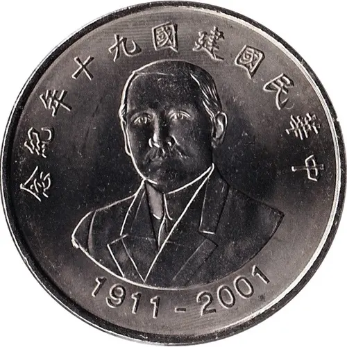 | Obverse lettering | 念紀年十九國建國民華中 1911 - 2001 (Translation: Celebration of the 90th Anniversary of the Founding of the Republic of China) |