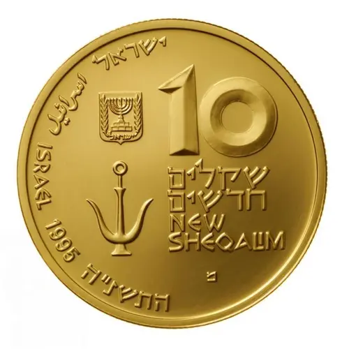 Face value in Hebrew and in English, Israel State Emblem, `Israel` in English, Hebrew and Arabic, the mint year and anchor |