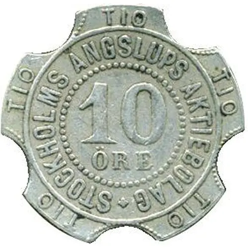 | Obverse lettering | TIO TIO TIO TIO TIO STOCKHOLMS ÅNGSLUPS AKTIEBOLAG 10 ÖRE |